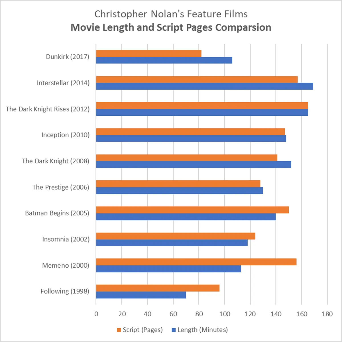 I’ve been collecting all of Christopher Nolan’s movie scripts, all 10 of his released feature films, from the indie debut Following (1998) to Dunkirk (2017). And at a first glance, it’s easy to notice that the Dunkirk script was by far the shortest Nolan’s work. It’s even 14 pages shorter than the Following’s, even though Dunkirk has 36 minutes longer in length.