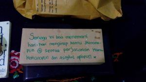 Terima kasih juga untuk kado pulang dari kalian. Entah ini ide siapa sampai ngasih saya kado alat-alat dandan, parfum, bedak, sampai obat kumur. Tapi ngakak sih begitu saya buka di rumah. Pasti ini ide muncul karena kalian pikir saya bakal susah dapat pasangan? Haha, say no more, fam *smiley face*
